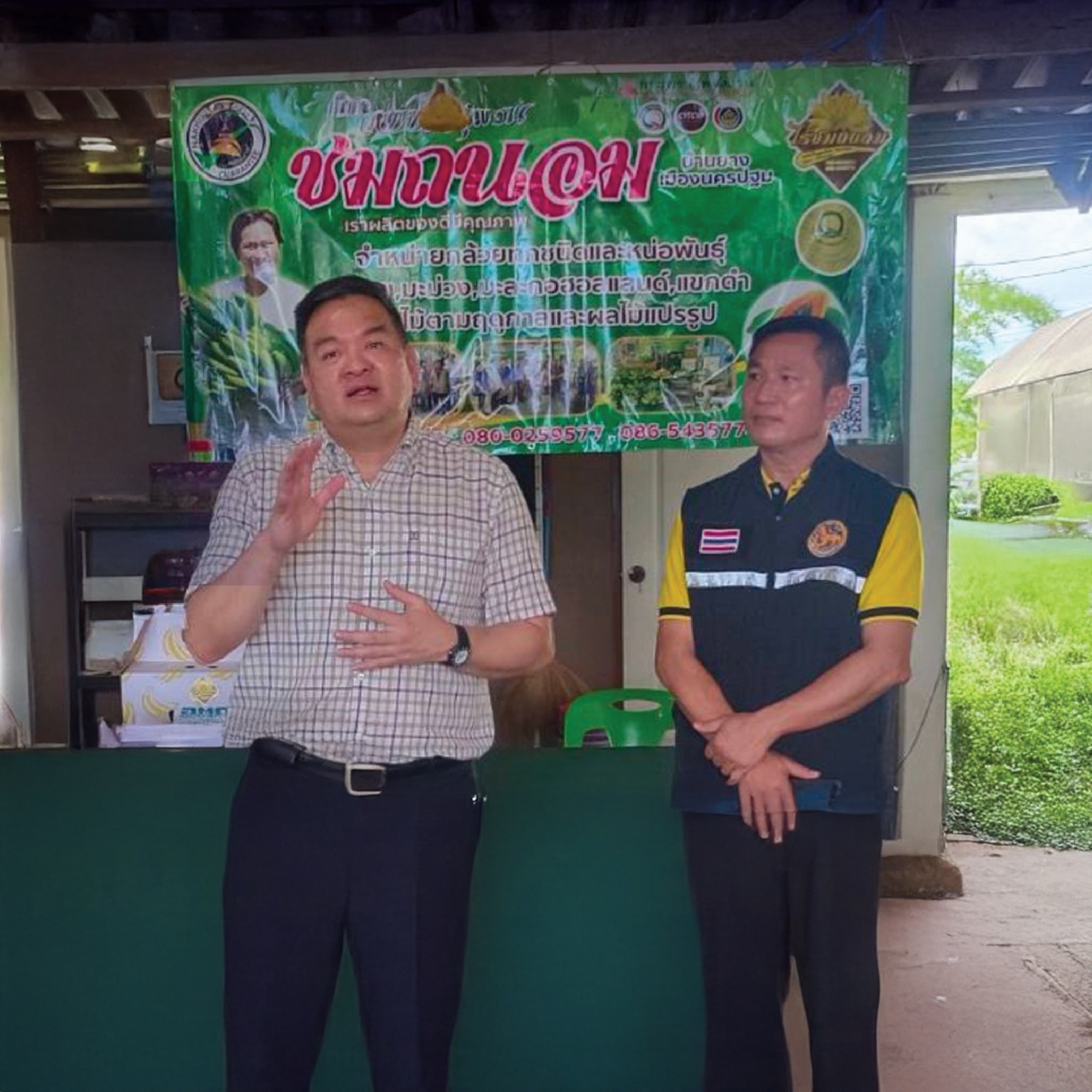 การลงพื้นที่ครั้งนี้มี นายวุฒิกร สุวรรณมิ่ง เกษตรอำเภอเมืองนครปฐม เป็นผู้ประสานงาน และ นางศศิประภา เเพ่งผล ประธานวิสาหกิจชุมชนชมถนอม พร้อมสมาชิกกลุ่ม และผู้นำชุมชน ร่วมให้การต้อนรับ