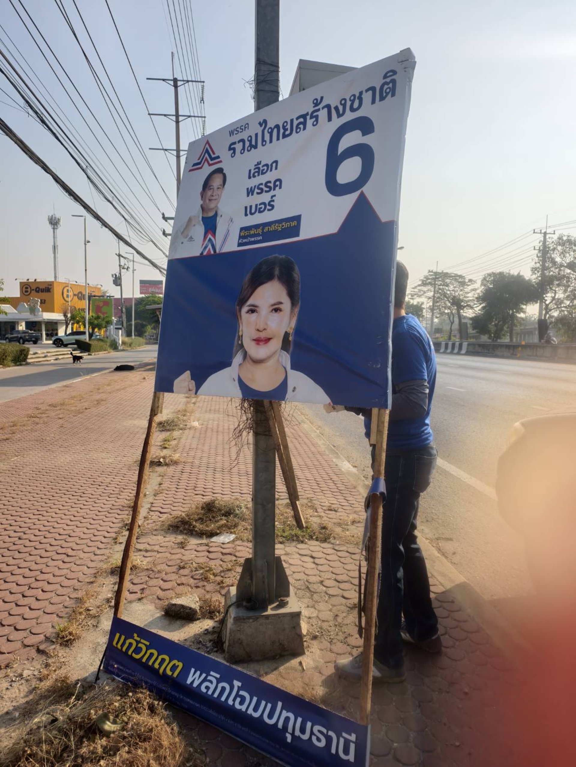 นายพีระพันธุ์ ระบุว่า ตั้งแต่ช่วงเริ่มต้นการหาเสียง พรรคได้ติดตั้งป้ายโฆษณานโยบาย หมายเลขพรรค และหมายเลขผู้สมัคร สส. ในหลายพื้นที่ โดยเฉพาะในเขตกรุงเทพฯ ซึ่งถือเป็นหนึ่งในพรรคแรก ๆ ที่ดำเนินการอย่างถูกต้องตามกฎหมาย แต่ต่อมาพบว่าป้ายของพรรคค่อย ๆ หายไป ถูกถอด ถูกทำลาย หรือถูกป้ายของพรรคการเมืองอื่นนำมาติดทับซ้ำแล้วซ้ำเล่า ทั้งในกรุงเทพฯ และในต่างจังหวัด